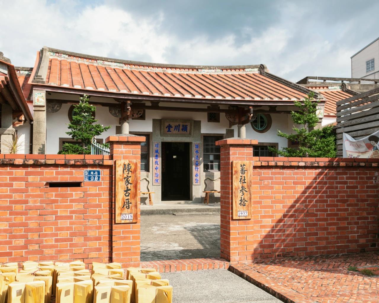 距慈裕宮不到50公尺的陳家古厝,即是「苗栗縣在地文化推廣協會」所在,位於雞犬相聞的靜謐小巷內,紅瓦紅磚的閩式三合院建築及門口晾曬的金銀紙,和四周透天厝相較,顯得突出。