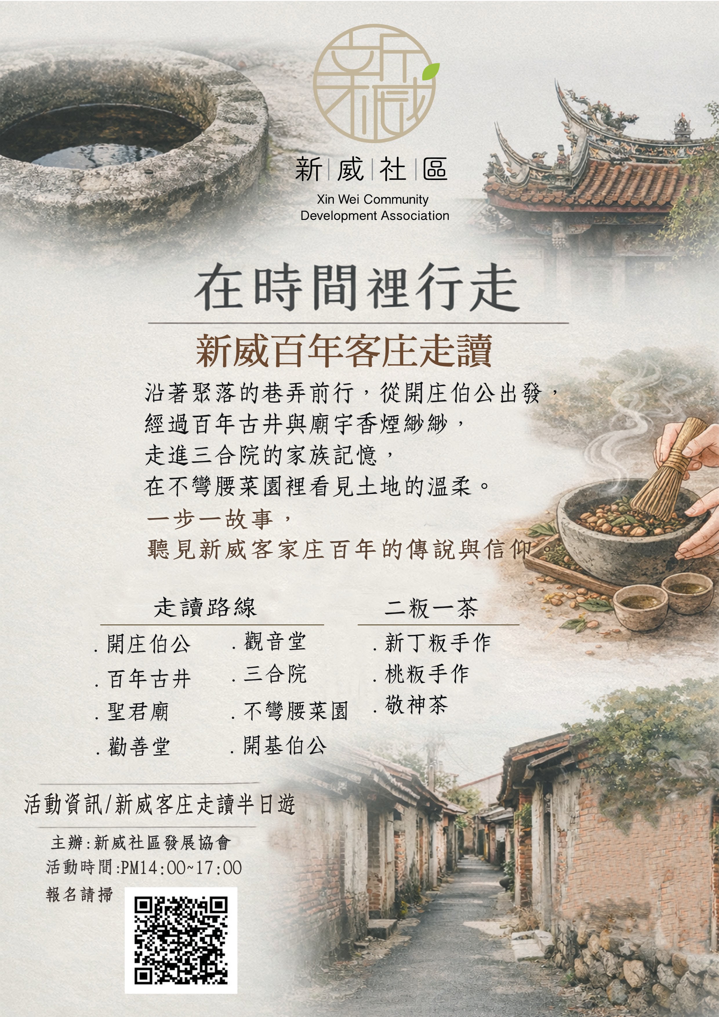 新威社區發展協會以執行社會局日間關懷據點為主,一週五天全天式的照顧與關懷長輩,讓長輩享有快樂健康的銀髮生活,另通過申請勞動部多元人力方案,以推廣社區走讀、木瓜食農教育、客家美食文化等為業務。