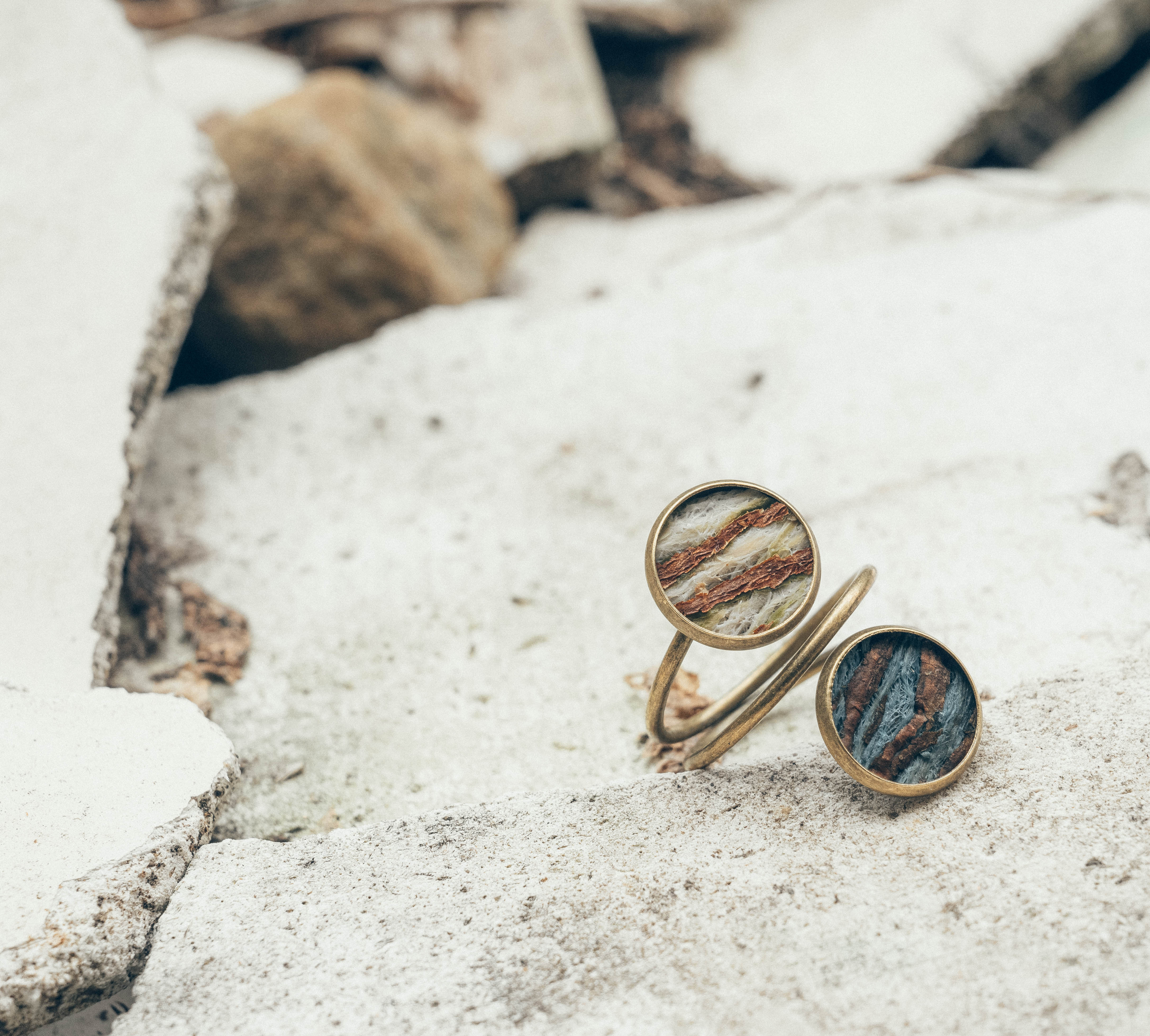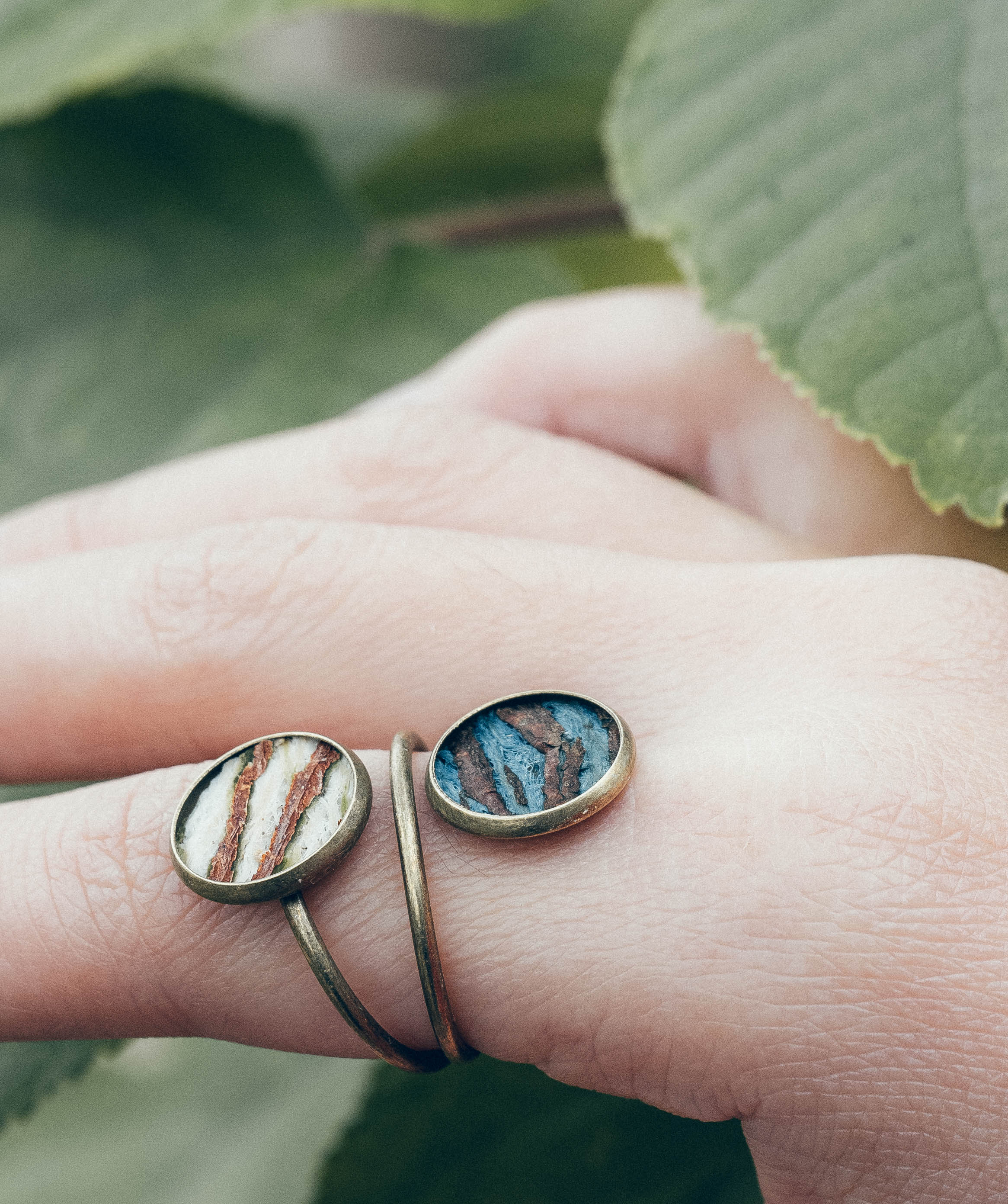 從選取紋路、梳理纖維到組裝收邊,每一只戒面皆為孤品,紀錄您與木質纖維摩挲的溫度。