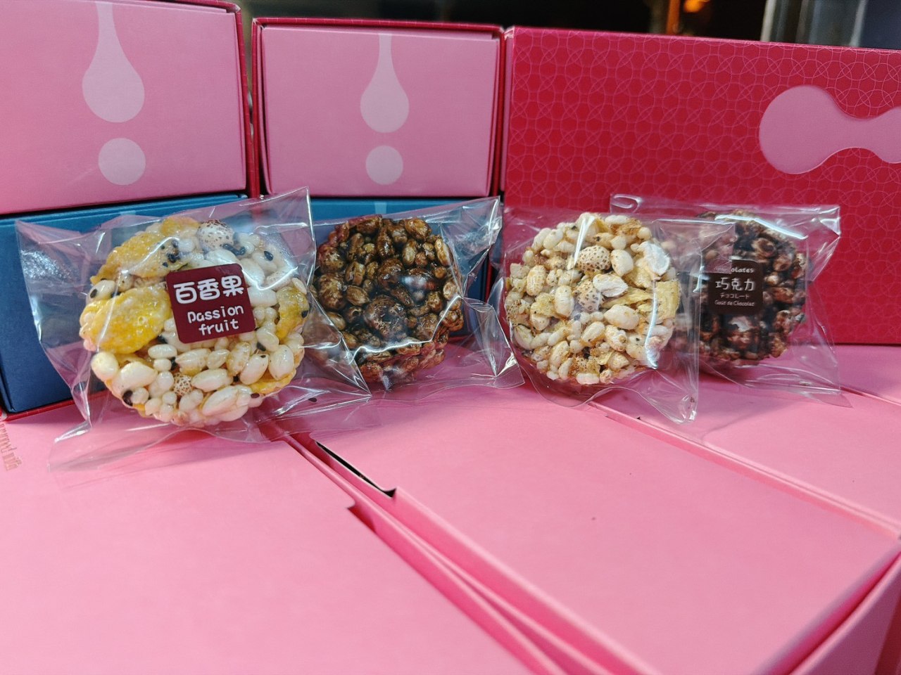 米香(2種口味: 茭白筍/百香果): 百香果米香|脆響清爽,果香輕盈入口瞬間,米粒在齒間清脆迸裂,顆顆分明卻不黏牙;隨著咀嚼,百香果的香氣慢慢釋放。